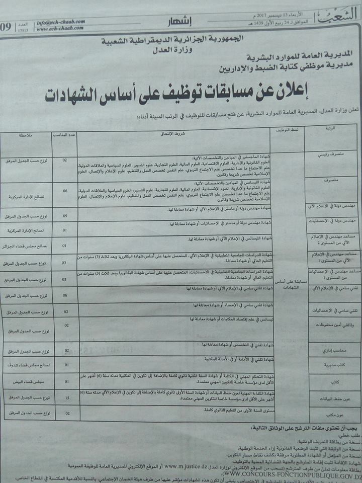 إعلان مسابقة توظيف وزارة العدل ديسمبر 2017 مدونة التوظيف في الجزائر Dzconcours