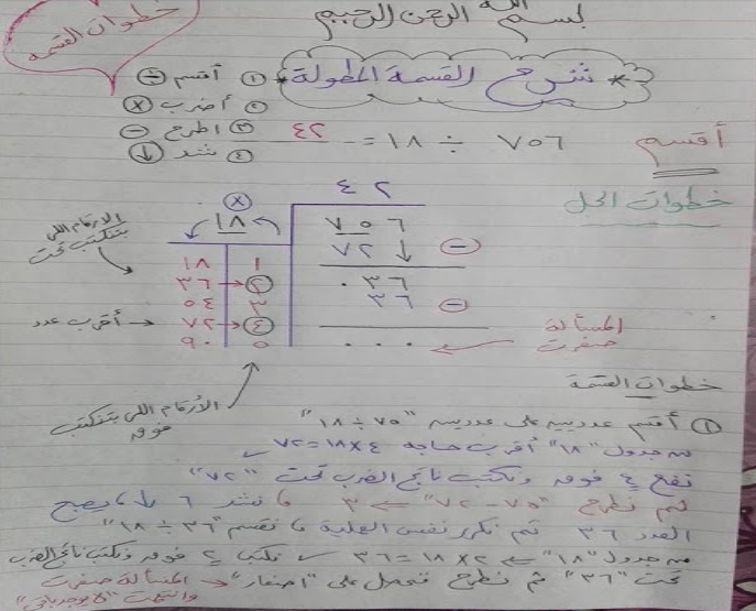 شرح لعملية القسمة المطولة مدونة المعلمة وفاء العماوي